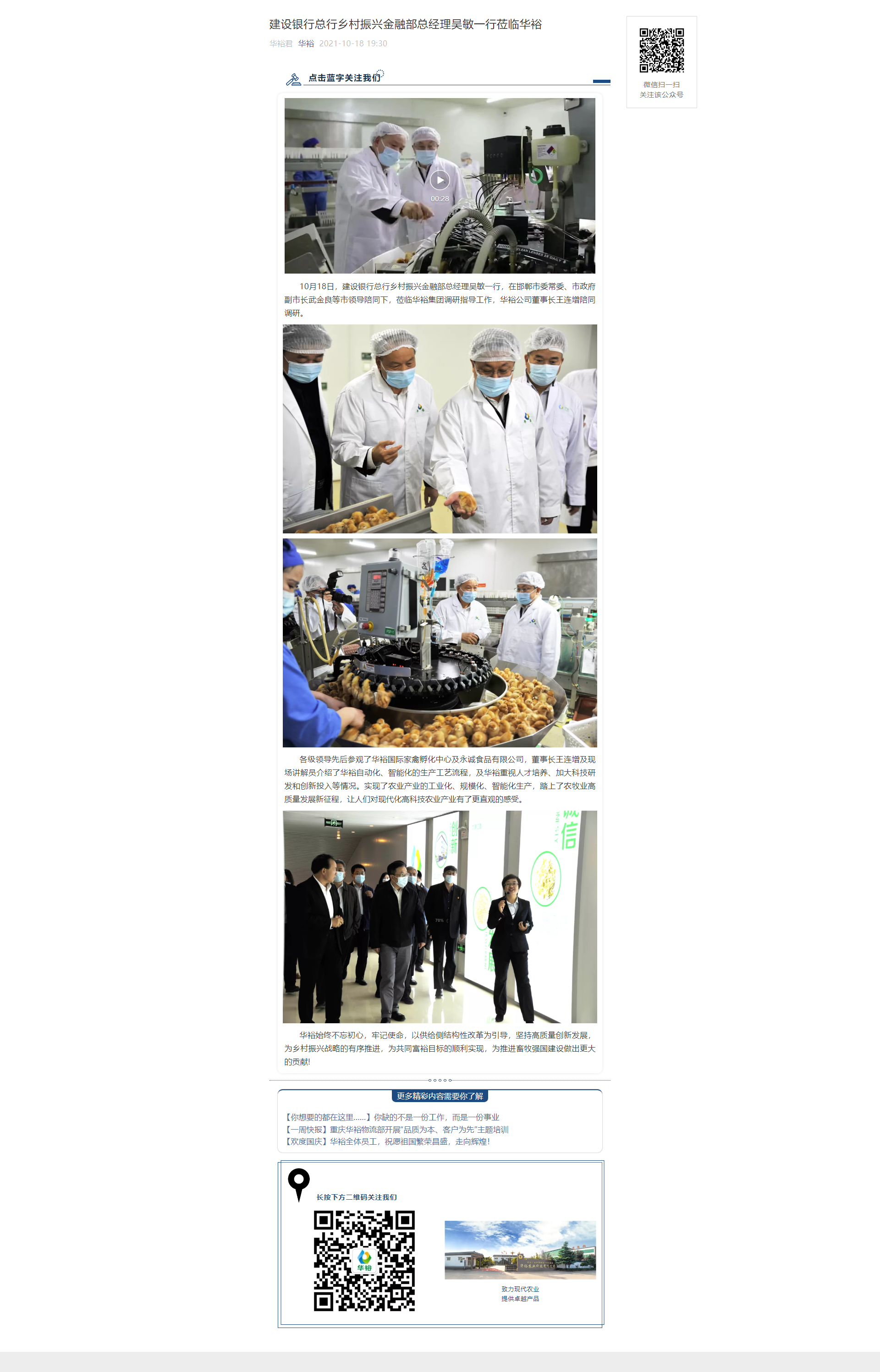 建設(shè)銀行總行鄉(xiāng)村振興金融部總經(jīng)理吳敏一行蒞臨華裕